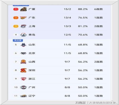 CBA积分榜最新排名出炉!广东反超上海杀回第2:辽篮跌至第11