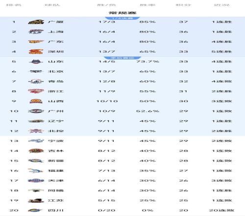 作为昔日总冠军得主,四川队本赛季至今一胜难求,本轮面对辽宁队依然打不过,第一节输6分、第二节输14分、第三节输21分、第四局输11分,最终57-109惨败,开局20连败继续稳居垫底,全队得分最高的球员是段睿骐,贡献15分2板5助。 辽宁队这边,总共七人得分上双,包括莫兰德14分10板5助2断2帽、王岚嵚14分1板4助、张陈治锋13分10板1助、威尔斯13分5板4助2断、付豪13分4板4助、鄢手骐11分1板4助、李虎翼11分1板2助。 最新积分榜如下——