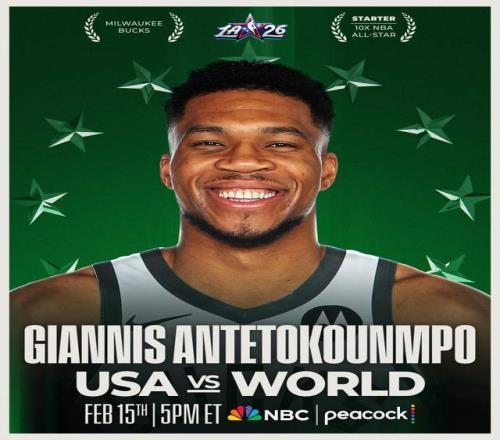 东部全明星首发球员—— 字母哥成为东部全明星首发,他是东部得票最高的球员。这是他生涯第10次入选全明星,也是连续第10年入选。赛季至今, 字母哥场均28.8分9.5篮板5.5助攻。