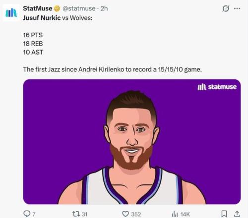 除了两大新星之外,爵士队之所以能够完成爆冷也与内线老将努尔基奇的爆发有关,本场努尔基奇11中7爆砍16分18板10助三双数据,外加1断1帽。 这不仅是其生涯第二次拿到三双,18个篮板还创造其生涯新高,也成为基里连科之后爵士队首位单场至少拿到15+15+10的球员。