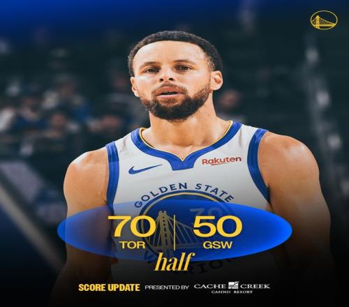 猛龙队的奎克利上半场得到18分,巴恩斯得到14分、4个篮板和6次助攻,马姆科拉什维利得到11分和8个篮板;勇士队的库里得到12分,佩顿得到9分。 奎克利连得6分,他率队以8-3的小高潮开始第三节,猛龙队继续扩大优势。穆迪和波兹姆斯基追回4分,英格拉姆外线手感回暖,连中2个三分球,奎克利也锦上添花,本节进行了5分钟时他们以91-61领先30分。库明加空接扣篮,勇士队连追7分缩小差距,英格拉姆再中三分暂时稳住局势。希尔德回应三分,两队之后各得几分,普斯特左侧45度角命中三分,希尔德投三分制造犯规,三罚全中,接着他又中三分,勇士队追至90-104。劳森突破打进为球队止血,库明加突破得手,三节结束时勇士队以94-108落后。