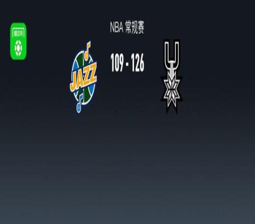 第一节爵士埃斯-贝利拿下12分,马刺福克斯拿下12分,首节战罢爵士31-31马刺 第二节爵士基扬特-乔治拿下7分,马刺文班亚马拿下8分,半场结束爵士53-65落后马刺 第三节爵士努尔基奇拿下9分,马刺凯尔登-约翰逊拿下7分,第三节结束爵士92-97落后马刺 第四节爵士埃斯-贝利拿下9分,马刺福克斯拿下12分,最终爵士109-126不敌马刺
