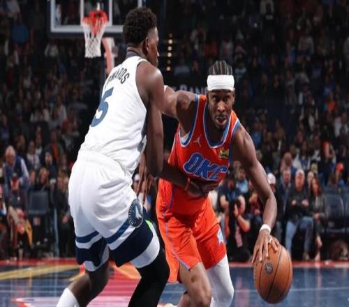 点评:杰伦布朗用场均29.4分6.8篮板4.9助攻1抢断0.4盖帽的完美发挥,证明了FMVP水货并不多。经历过赛季初期阵容大变动的磨合后,马祖拉很快找到了赢球办法,西蒙斯、科塔、沃尔什被他调教成了足以影响比赛走势的拼图球员。47场比赛打完他们的进攻效率来到了120.6高居联盟第一,这实在让人诧异。进攻打开的同时他们的防守并不差,每百回合仅仅丢掉113.7分联盟第13少,净效率+6.9高居联盟第三。作为一支将小球发挥到极致的球队,本赛季降低了三分球出手数却提升了效率,场均命中15.6个三分球命中率达到了42.3%,双方排名联盟第二!本赛季的东部活塞过于年轻,骑士、尼克斯始终发挥不出阵容该有的实力,凯尔特人反而更有机会打入总决赛! 俄克拉荷马雷霆队——卫冕冠军,实力超群!