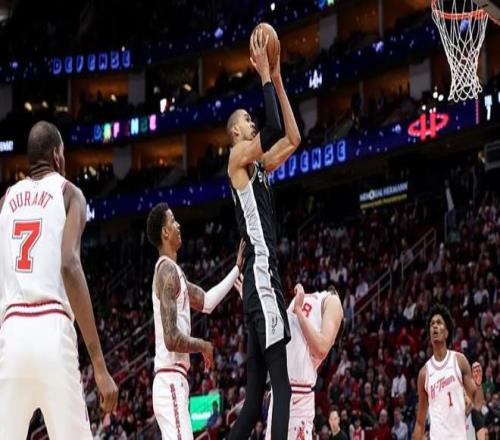点评:上赛季的活塞已经展现出了黑马姿态,本赛季随着坎宁安、杜伦等年轻核心球员的进一步成长,球队长时间霸占东部榜首的位置。赛季至今坎宁安场均砍下26.6分6.3篮板9.7助攻的MVP级数据,杜伦场均17.8分10.6篮板0.9抢断0.9盖帽是联盟少有的攻防一体的内线支柱。邓罗的加盟让这支球队有了一名可靠的三分投手,场均12.1分2.7篮板,以场均40.5%的三分命中率命中2.9个三分球。球队整体攻防非常均衡,进攻效率116.1联盟第11,防守效率108.7联盟第2,净效率+7.3联盟第二,我们都知道防守赢得季后赛,这支球队球风硬朗,能打阵地战也能打跑轰风格多变,最新一期NBA官方实力榜中,活塞已经反超雷霆登顶联盟第一,他们具备冲出东部争冠的一切条件! 圣安东尼奥马刺队——顶级天赋,西部大黑马!