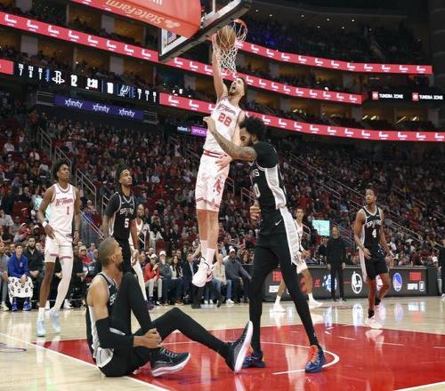 第二节双方轮换阵容阶段,阿门抛投+暴扣,但卡斯尔又是连得5分,然后助攻队友空切,马刺追到35-40,阿门中投止血,文班回敬中投以后,又抢断空接隔扣阿门。杜兰特两记中投,助攻伊森底角三分命中,一波7-0再度拉开10分,马刺暂停。伊森和史密斯三分连中,申京倒地救球火箭暂停。谢泼德连得4分又拉开,福克斯中投以后,申京和文班内线对飙,马刺又追到个位数,半场结束火箭62-54领先8分。