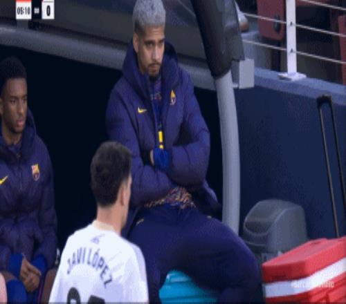 第6分钟,替补待命,镜头给到阿劳霍