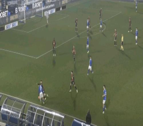 科莫门将布特斯一脚直塞就让队友直接面对米兰的后卫。