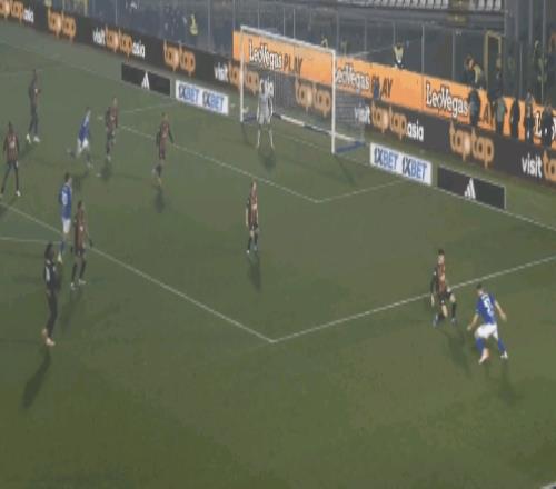 50′25″托莫里边路踢空被对手收缩围困,到最终莫雷诺底线倒三角传中,50′45″帕斯远射被麦尼昂托出底线的整个过程里,本来应该防守这一侧的弗法纳一直不见踪影。 上半时需要压出去时不断在后腰与后卫之间暴露空档,感激麦尼昂让球队还能留在比赛中。 到下半时米兰反超比分后,米兰决定收缩阵型,对手替补上场的边锋新星罗德里格斯开始军训萨勒马克尔斯和托莫里了。