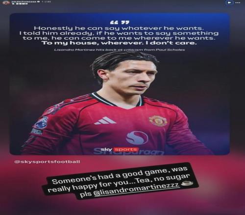 阿根廷人随后补充道:“我尊重那些和俱乐部有联系、也真的想帮助俱乐部的人。但在电视上说话谁都会,可一旦面对面,反而没有人敢把话说出口。所以说实话,我并不在意外界怎么说。我只专注于自己的表现、球队的表现,我会为这家俱乐部拼到最后一天。” 事情是这样的,曼市德比前,两位曼联传奇斯科尔斯和巴特在播客中对利马进行了极具画面感的嘲讽。