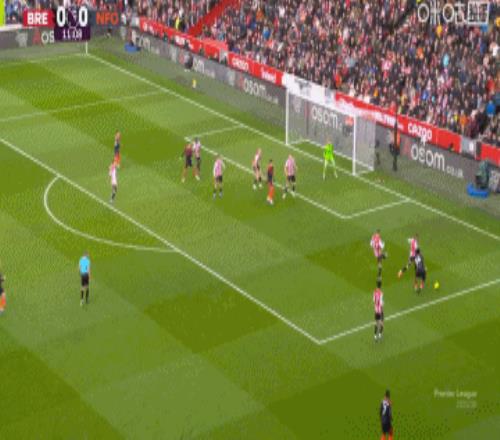 第12分钟,伊戈尔·热苏斯接队友传中小角度抽射破门。诺丁汉森林1-0领先布伦特福德。