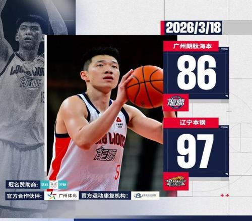 2025-26赛季CBA常规赛第二十七轮 客场负于辽宁 广州朗肽海本 86 :97 负于辽宁本钢