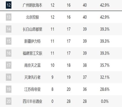 CBA最新排名!沪浙拉开差距,47紧咬广东,8队竞争第12名!