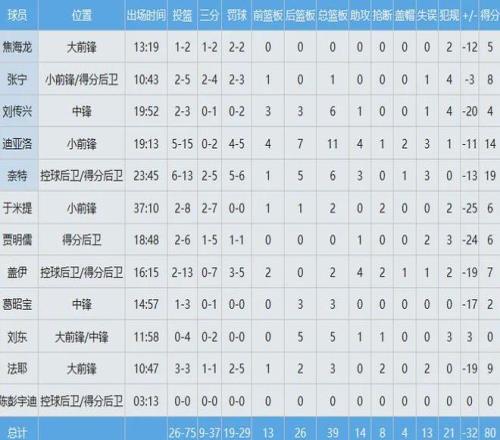 山西队数据如下:
