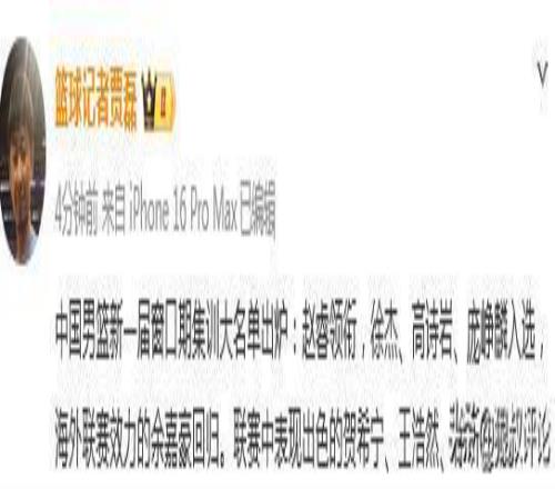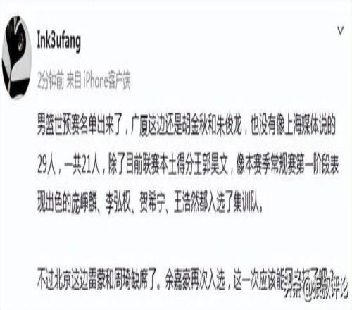 男篮公布21人集训名单引热议!庞峥麟贺希宁领衔新面孔周琦缺席