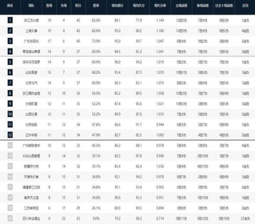 CBA常规赛第一阶段排名:广厦第一,上海第二,四川23连败垫底