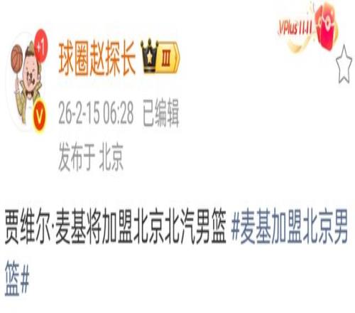 想要拿到CBA总冠军,超级外援是必不可少的配置,上赛季浙江广厦也是因为有了布朗,才能够顺利夺冠的。 本赛季北京首钢的目标是总冠军,但外援差点意思,杰曼和斯佩尔曼勉强可以用,马帝昂虽然有所起色,实力还是不够,贝利走人是时间问题。根据媒体报道,经过了多次沟通之后,NBA名将麦基确定会加盟北京首钢,赵睿也是有了好搭档,当然,许利民肯定是球队的短板,想要冲击总冠军,还需要一些运气。
