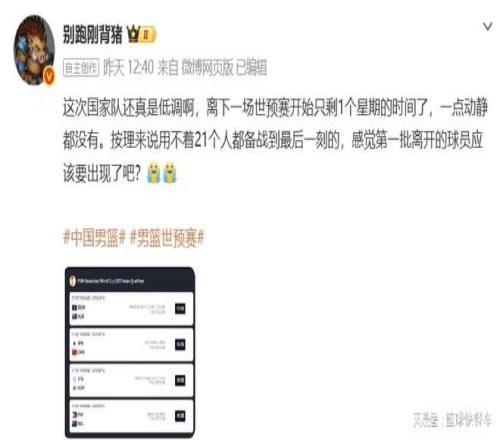 对于中国队而言,这一次世预赛是极为重要的。由于在上一个窗口期,中国队两场比赛都输给了韩国队,遭遇两连败,球队目前以0胜2负的战绩,排在小组第3名,而第一名和第二名的日本队和韩国队,他们都取得了2胜0负的战绩,为了确保一个世界杯资格。中国队接下来这两场比赛,必须全力争胜,只有击败日本队和中国台北队,中国队才能有机会冲击世界杯。一旦再输给对手,他们极有可能会被提前淘汰出局。 这一次男篮世预赛21人集训大名单,已经早早就公布了,赵睿、赵继伟、张镇麟领衔出战。很显然,这一次后卫线和锋线实力,其实还算不错,面对日本队和中国台北,中国队的后卫线和锋线,其实是足够的。不过,内线配置上,这一次集训名单上,只有胡金秋、余嘉豪、徐昕、焦泊乔和蒋浩然。在内线上,这一次少了大魔王周琦,对于男篮内线的压力还是比较大。毕竟,周琦在内线护框能力和统治力,暂时还是其他人无法相提并论的。 而且,余嘉豪目前的情况也不大清楚,由于国家队目前是秘密集训中,余嘉豪究竟归队了没有,暂时还不得而知。至于徐昕、焦泊乔等人,他们只能作为轮换内线,临时顶替一下,很难扛起内线大旗。如果余嘉豪无法及时回归的话,中国队内线就只剩下胡金秋。在机动性上,胡金秋确实是足够灵活。可在内线统治力上,胡金秋的护框却是一大难题。相比于周琦和余嘉豪,胡金秋对于日本和台北的内线杀伤力,明显是不够的。 另外,或许是考虑到之前两输韩国后,中国队这一次极为保守,尽管距离比赛还剩下不到一周的时间,但中国队还是迟迟没有动作。目前,国家队集训究竟是什么成果,暂时不得而知。而且,按照国际大赛的规则,男篮最终也只能带14人大名单,这也就意味着,现有的21人集训名单,至少还会裁掉7人。如果是以往,被裁掉的球员会提前离队,可现如今,男篮却迟迟没有裁员。 很显然,郭士强对于这一次世预赛,他是极为重视的,毕竟,这两战事关中国队能否晋级世界杯。为了迷惑对手,郭士强采取了全封闭集训,这也让对手无法提前预判中国队的战术。而且,在人员选择上,中国队也迟迟没有裁员和公布大名单的打算,或许,男篮最终的12人大名单,恐怕也等到开打前才会揭晓。看样子,郭士强这一次是动真格了,秘密憋大招,准备复仇。