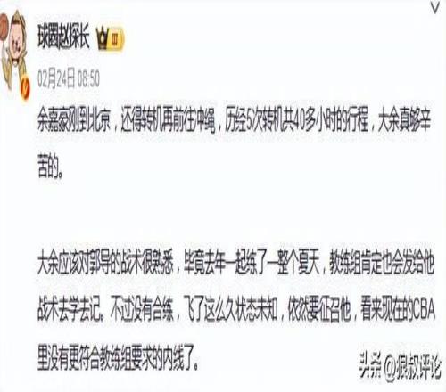 北京时间2月26日,男篮世预赛第二个窗口期正式开打,中国男篮客场对阵日本男篮。 赛前,中国男篮内线余嘉豪接受FIBA的采访, Q:旅途劳顿,终于来到了日本,现在的适应如何,然后个人状态如何? 余嘉豪:很荣幸能代表中国男篮参加比赛,然后肯定有很多困难,但这些都不是借口,作为一个职业运动员在场上要尽量展示自己最好的状态,能帮助球队是我应该做的,很多客观的因素,就是要靠自己去克服。 余嘉豪作为2米20以上的大中锋,早在去年的亚洲杯就证明过自己,一旦在低位拿到球权,他的身高优势明显,还有良好的终结效率,与胡金秋完全是互补的位置。 在西班牙联赛经历了较大幅度的成长和调整后,他是否具备扛起中国男篮大旗?相信是无数球迷关注的焦点,这个赛季对于余嘉豪肯定是比较挣扎,从赛季初的磨合,再到后续坐稳球队主力,再到打出外援级别的比赛。 当他回归到中国男篮,能否直接转化成为单独创造优势的资本,而国内既然没有能平替余嘉豪的年轻中锋,一旦周琦彻底淡出国家队,杨瀚森又长期在NBA打球,余嘉豪可能会是接下来常规征召对象。 中国男篮客场对阵日本队,这是绝对不容有失的比赛,余嘉豪三万里驰援中国男篮远征日本的重点球员,具体能打出什么样的表现,值得外界的重点关注。 |