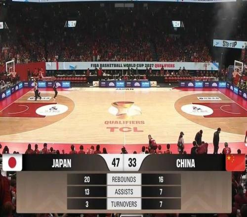 后半节赵睿依靠个人能力连造6罚,李弘权飚进底角三分,王浩然挡拆下顺得手,日本队继续通过灵活的跑动+传切+抢断快攻频频在篮下制造杀伤,保持双位数领先,次节中国队再输4分,半场33-47落后日本。