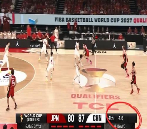 比赛最后7.3秒,廖三宁两罚不中,但是胡金秋抢到篮板球后用一记扣篮为中国男篮锁定了胜局,最后时刻给了日本男篮4.6秒的比赛时间。 最后这4.6秒,日本球员富永启生在后场接到球并运到前场前进了大概十米后计时器才开表,不过即便日本男篮偷了2秒的时间依旧未能投进最后这次投篮,中国男篮就此实现了绝地反击逆转取胜。