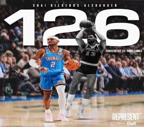 数据统计 雷霆:亚历山大35分9篮板15助攻,杰林7记三分29分12篮板,乔13分,米切尔复出24分,麦凯恩13分。 掘金:约基奇32分14篮板13助攻,戈登23分10篮板,穆雷21分8篮板6助攻,小哈达威8记三分28分。 本场之星 亚历山大连续126场得分20+,追平传奇巨星张伯伦保持的纪录,并列NBA历史第一。 约基奇本赛季24次三双联盟第一,生涯188次三双历史第二,距离历史第一的威少208次三双还差20次三双。