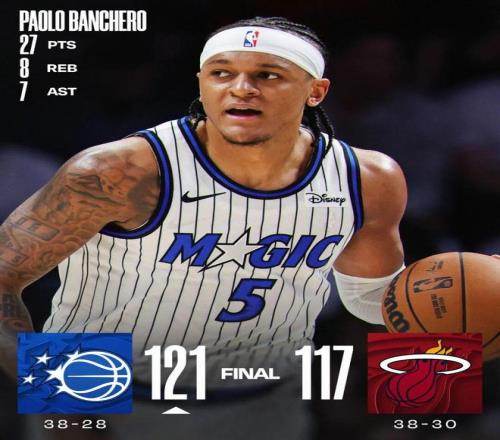 魔术不仅赢了,还赢得彻底。 此役过后,魔术豪取7连胜,同时终结了热火的7连胜。38胜28负东部第五,热火38胜30负跌到第七。 从附加赛区到第五,魔术踩着热火爬上去的。