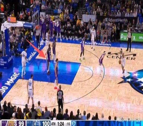 比赛还剩下1分24秒时,魔术发动进攻,裁判报告指出湖人中锋艾顿在身边没有明确防守人的情况下载禁区待的时间过久,应该吹罚防守三秒违例,魔术得到一次罚球机会。