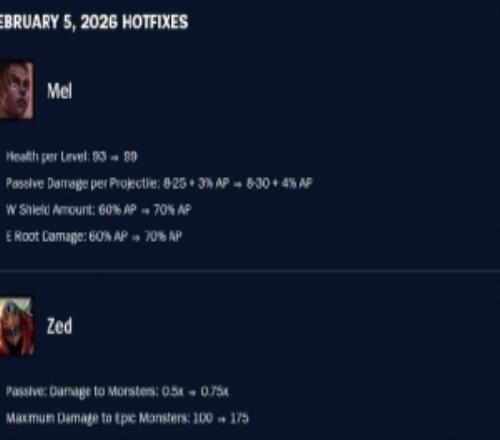 热补丁:梅尔成长生命值和法术加成等数值加强劫对野怪伤害增加