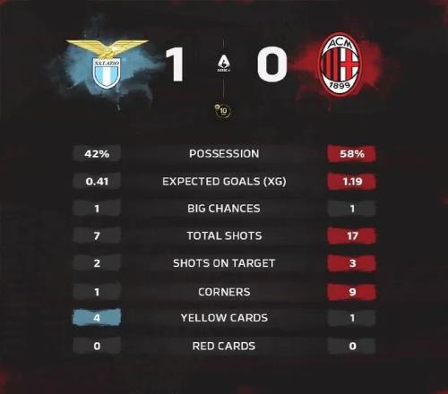 米兰圈 北京时间3:45,意甲第29轮拉齐奥vsAC米兰。上半场,伊萨克森、泰勒先后中横梁,马鲁西奇助攻伊萨克森破门;丹尼尔·马尔蒂尼错失良机。下半场,埃斯图皮尼安险些乌龙;阿特卡梅进球被吹;萨里读秒抗议补时时长吃到红牌。最终,米兰0-1拉齐奥。 【比赛焦点瞬间】 第10分钟,帕夫洛维奇禁区内左侧得球,随后假动作过掉一人后自己捅射,射门被封堵了 第12分钟,伊萨克森禁区内左侧左脚爆射,皮球重重砸在横梁上弹出 第25分钟,禁区内左侧泰勒小角度左脚爆射,皮球又一次重重砸在横梁上弹出 第26分钟,马鲁西奇长传打右路,伊萨克森扛开埃斯图皮尼安,杀入禁区内右侧小角度左脚推射破门,拉齐奥1-0领先米兰 第36分钟,丹尼尔·马尔蒂尼前场争下球权,带球一路杀进禁区,推射近角被迈尼昂扑住 第51分钟,莫德里奇弧顶发炮被扑出,随后右路萨勒马科尔斯横扫弧顶,皮球挑进禁区,福法纳头球攻门再次被扑住 第54分钟,拉齐奥左侧传中到后门柱位置,埃斯图皮尼安头球回顶太冲了,迈尼昂脱手险些乌龙 第55分钟,莱奥禁区前回做失误,埃斯图皮尼安上抢犯规,吃到一张黄牌 第62分钟,普利西奇禁区内左侧右脚抽射,皮球直接打飞了 第67分钟,莱奥被换下场非常沮丧,与阿莱格里的交流情绪激动 第70分钟,爱德华多·莫塔发球太慢,主裁判出示黄牌警告 第75分钟,莫德里奇主罚角球到禁区内,禁区中央一片混乱,阿特卡梅抽射破门,主裁判吹罚阿特卡梅手球,进球被判无效 第81分钟,塔瓦雷斯边路踢翻了萨勒马科尔斯,主裁判出示黄牌警告 第82分钟,莫德里奇禁区前沿接应,被裁判阻挡了一下,随后调整后的远射打高了 第90+7分钟,萨里抗议主裁判还在给补时时间,主裁直接红牌将萨里罚出场 最终,米兰0-1拉齐奥。