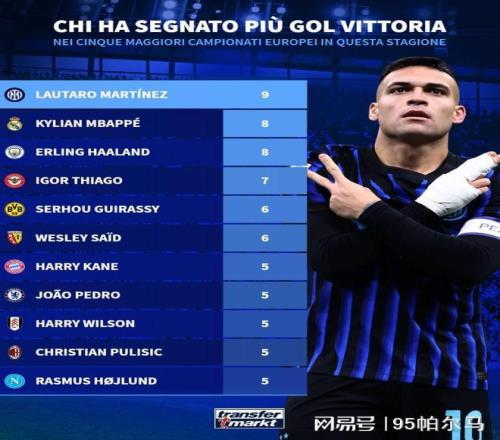 试想下,在劳塔罗因伤最近缺战的5场国内赛事中,合计才打进5球的国米只收获了1场胜利,锋无力的蓝黑军团虽然在意甲积分榜上暂时领跑,然而劳塔罗的休战一定程度上给了“追兵”踹气的机会,危机感不言而喻。战术阵型的调整、内部潜力的挖掘,都存在临时起意的局限性。 对阵科莫时,国米居然全场只有3次射门&射正次数为0,当思念是一种病时,劳塔罗的个人价值顺势得到了升华,值得一提的是,在本赛季五大联赛制胜球的次数上,劳塔罗(9次)将姆巴佩和哈兰德两位神锋比下去了。